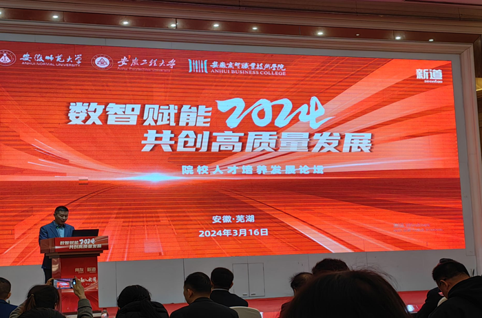 为进一步推动学科专业建设,促进商科专业数智化转型,3月16日,财经学院会计学教研室主任张淑英和财务管理教研室主任钟德仁两位老师参加了在芜湖举办的“数智赋能,2024共创高质量发展院校人才培养发展论坛”。此次会议由安徽师范大学和安徽工程大学主办、博业体育(中国)官方网站-登录入口联合主办,新道科技有限公司承办。会议邀请安徽师范大学副校长熊宇杰、安徽工程大学副校长周虹屏、安徽商贸职业技术学院党委副书记王炜等以及新道科技的行业专家进行专题的分享。