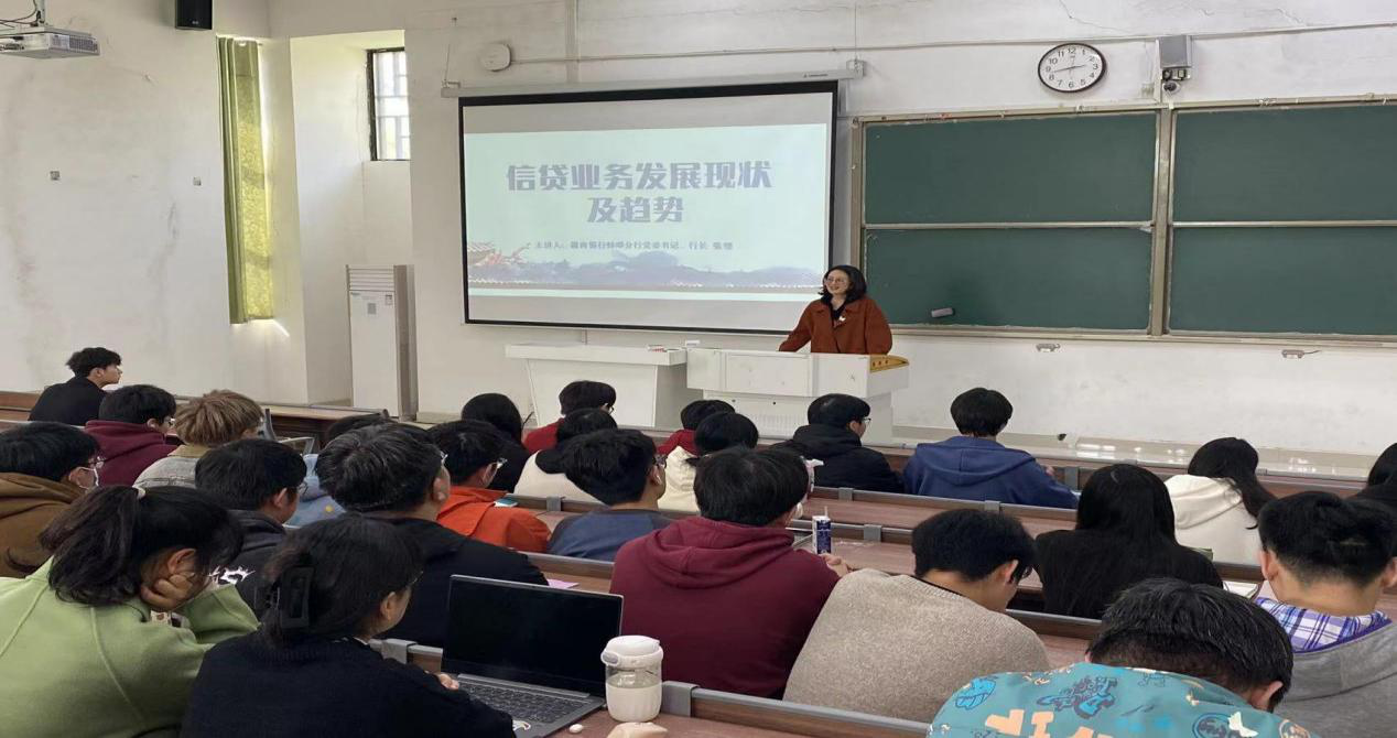 张缨首先介绍了信贷的基本概念和信贷的资金来源,讲解了信贷业务的的构成要素,引出了信贷的各种分类和品种,丰富了同学们的知识面,对我们同学大有裨益。随后通过政府政策,企业发展,体系完善等多方面角度解析了存贷差的收紧,信贷的精准投放和风险管控,介绍了信贷新模式和各方面管理办法,并富有前瞻性地对信贷业务的未来发展趋势做出判断和见解。而后张缨行长在进一步强化巩固大学生专业知识的同时,结合自身实际经验生动丰富地为同学们讲解了针对各类金融产品的各种营销技巧,以及应该避免的营销雷区。