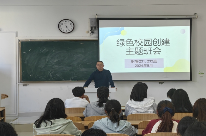 二是开展主题班会,普及绿色发展理念,培育绿色校园文化。主题班会上,各班级辅导员带领全体学生认真学习习近平生态文明思想,深刻解读绿色发展理念,围绕“绿色校园创建”向学生介绍相关知识、建设绿色校园的意义以及学院助力绿色校园建设的活动规划,呼吁全体学生坚决反对奢侈浪费和不合理消费,自觉增强责任意识和保护环境意识,贯彻节能环保、绿色低碳的生活理念,积极参与绿色校园创建工作。