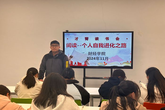 为助推校园文化建设、营造浓郁的书香校园氛围、进一步提高“才菁”学子的文化素养,11月27日下午,财经学院“才菁”研习社在校一站式社区党团工作室开展“才菁”读书分享会活动。校图书馆期刊部主任崔然为财经学院的思政委员们做了一场“阅读——个人自我进化之路”的精彩讲座。