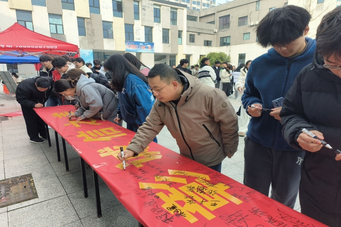 在支部党员和社团联合会工作人员的组织下,同学们纷纷在活动横幅上进行签名,并表示,将用自己的言行带动和影响身边的人,树牢诚信观念,争当文明学生,共同为构建文明美丽和谐校园贡献自己的一份力量。孔子曰“不学礼,无以立”。礼仪的核心是要人们遵循“律己、敬人、秩序”的行为规范,它蕴含着诚信、和谐与秩序的价值观念,是师生应当具有的基本素质。学院将继续丰富“诚信·文明”主题教育的形式与内涵,提升学院学风建设质量,努力让诚信成为学院行事的准则根基,使文明成为学院风貌的鲜明标识,为推动学院高质量发展贡献力量。(特约通讯员:张俊 摄影:方汝佳 审核:耿广汉)