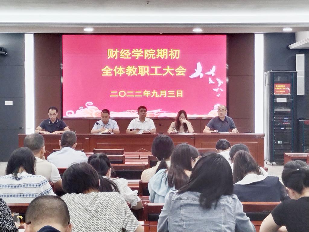 9月3日上午,财经学院在龙湖校区西附楼111会议室召开新学期全体教职工会议,学院党政领导及全体教职工参加会议,会议由学院党委副书记、纪委书记耿广汉主持。