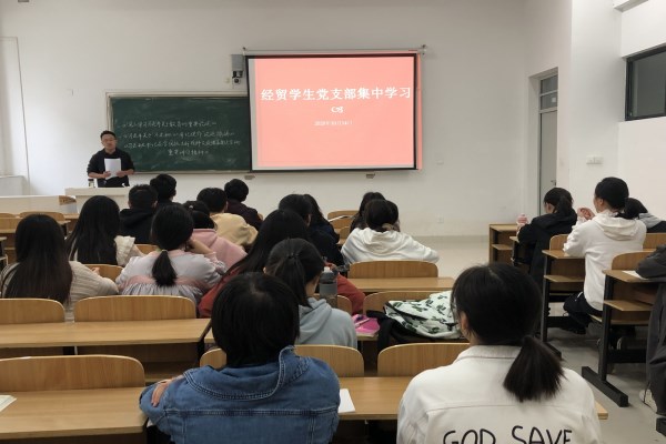 10月14日下午,财经学院经贸学生党支部在致知楼C105开展党员集中理论学习,会议由支部书记许欣主持。