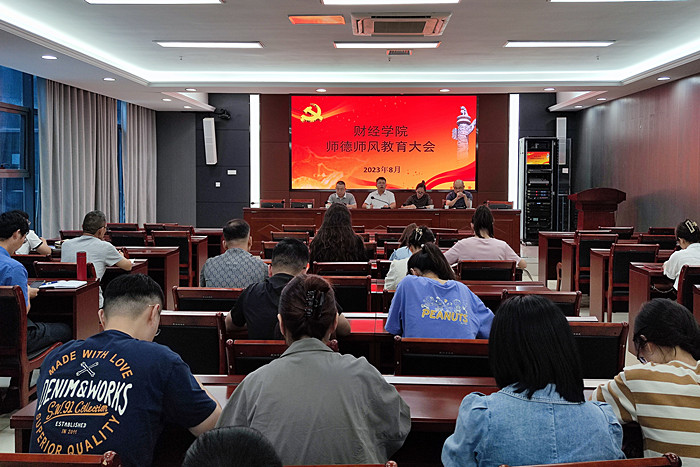 为贯彻落实习近平总书记关于教育的重要指示精神,加强学院师德师风建设,提高教师文明从教、廉洁从教的职业道德素养,9月1日下午,财经学院在西附楼111会议室召开2023年秋季学期师德师风教育大会。学院全体教职工参会,全体党政领导出席。