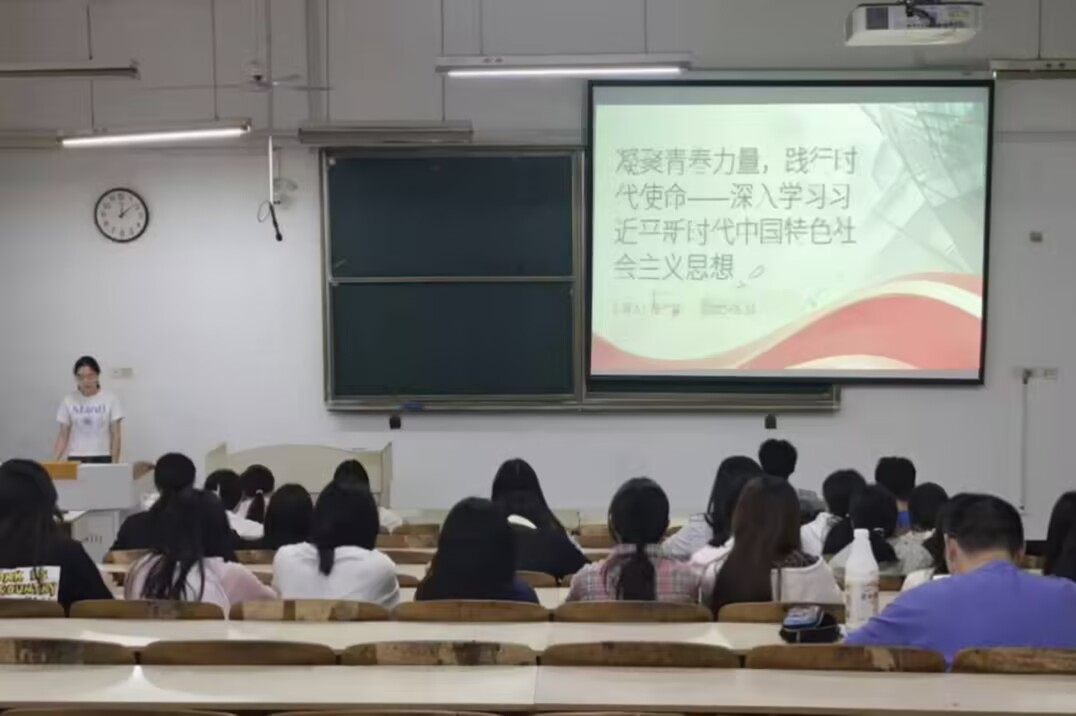 会议伊始,丁千珊详细介绍了习近平新时代中国特色社会主义思想概述的核心内容与理论体系,明确了其与马克思主义中国化的关系,并结合时代背景阐述其重要意义。她指出,青年是历史接续者、创新主力军和文化传承者,要严格要求自己提升政治素养,练就过硬本领,积极对标国家战略,关注人民需求。最后她呼吁青年学子不仅要加强理论学习,还要积极投身社会实践,扎根基层一线,做到志愿服务常态化,以此来践行时代使命。