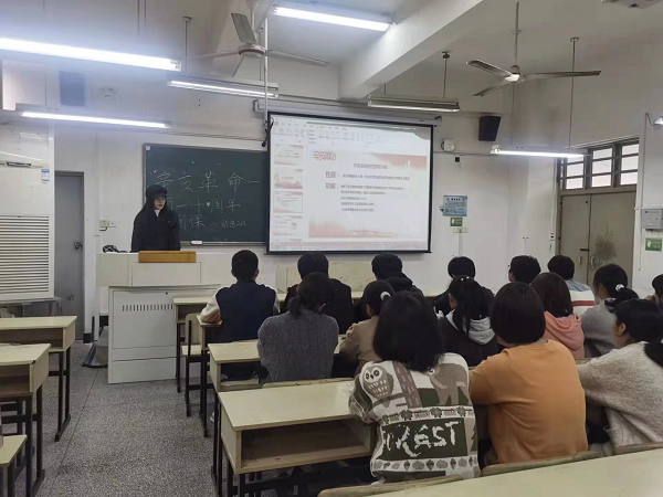 动医213团支书邓玙菡于10月23日下午在求知楼A座301带领班级同学学习了辛亥革命110周年团课。课后团员李惠康表示,“在今天下午我们一起收看了纪念辛亥革命110周年大会,感悟很深。我们现在能够坐在窗明几净的教室中上课,享受现代科技可以带给我们的幸福生活,是革命先烈舍小家、保大家换来的。忘记历史是一种背叛,而辛亥革命就是所有中国人应该铭记的一段历史,作为新时代的大学生,我无比珍惜现在的美好生活,也一定会努力学习,报效祖国!”