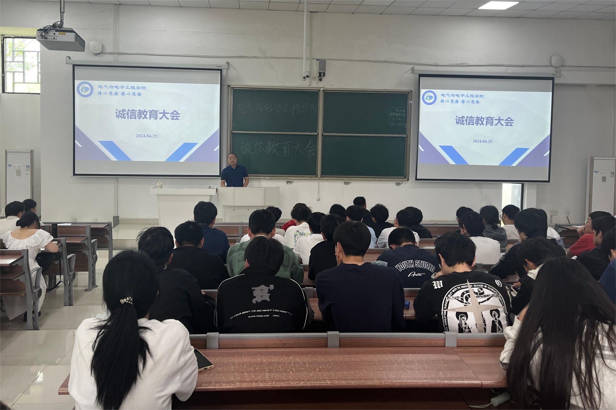 为进一步强化大学生诚信意识,树立诚信观念,全面提升大学生思想道德素质,4月25日,电气与电子工程学院召开诚信教育大会,学院党委副书记、纪委书记尚磊,资助联系人张深,学院2023级全体国家助学金获得者及各班生活委员共同参会。