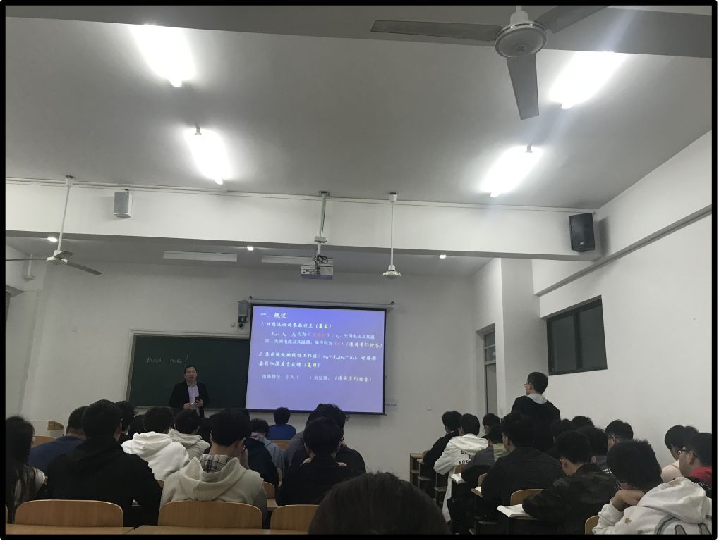 近日,安徽省第二届青年教师教学竞赛一等奖获得者、校级教学名师、光电工程系教师李勇教授在致知楼A305开展了一堂富有激情、别开生面的《模拟电子技术》课程教学示范课。李勇由简单计算器和超大规模计算机的实例引入课程讲授内容,通过信息化智慧教学手段,将PPT课件、中国大学MOOC优秀教学资源、自制教学视频与学习通平台相融合,结合教师精讲和翻转课堂,重点突出、主次分明地呈现了授课内容。李勇授课方式灵活多样,秉承了“教而不僵、用在灵活、重在实践”的教学理念,始终致力于教学创新,融合 “课内”、“课外”、“网络”三个课堂,培养学生科学素养和科技报国的爱国情怀,实现了《模拟电子技术》课程的“教、学、做、竞、德”五位一体的教学模式。