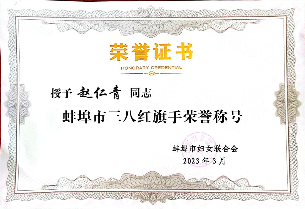 赵仁青荣获蚌埠市三八红旗手