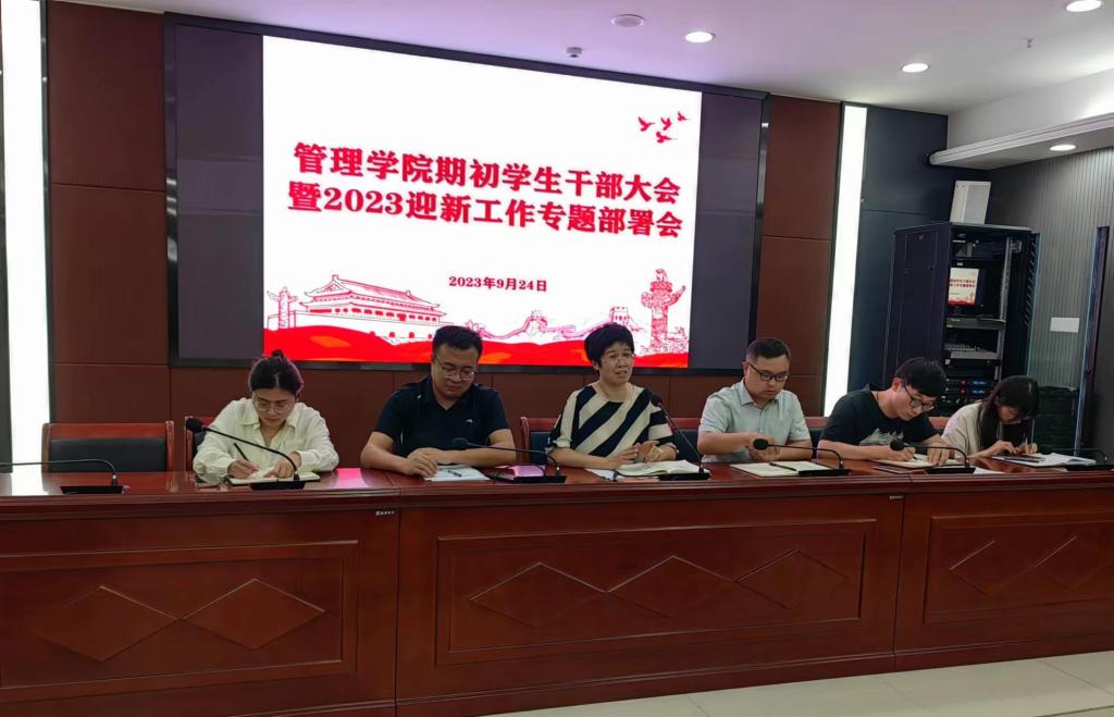 9月4日晚,管理学院在西辅楼111会议室召开初期学生干部大会暨2023迎新工作专题部署会。学院党委副书记陶漫出席会议并讲话,全体辅导员出席会议,会议由党政办公室主任李永鹏主持。