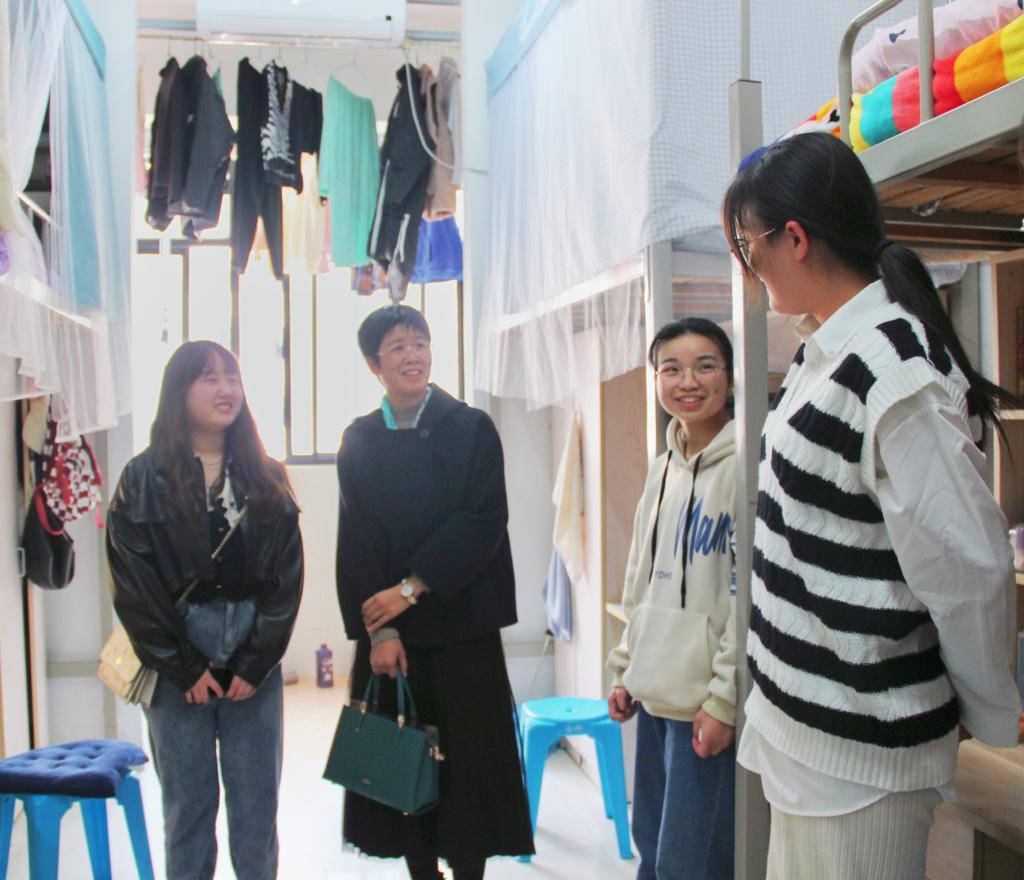 近日,管理学院党委副书记陶漫率全体辅导员深入学生宿舍开展宿舍安全排查并亲切看望慰问广大学生。