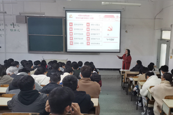 2021年11月24日中午,车辆与农业装备专业学生党支部,在求知楼A101教室召开“百年大党再出发—学习十九届六中全会《公报》”主题党课学习活动,党支部全体党员和支部所属团支部全体团员参加学习,党支部书记谭博文主讲。