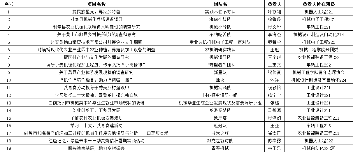 根据《机械工程学院2023年大学生志愿者暑期“三下乡”社会实践活动安排意见》的相关要求,结合校级团队评审,拟成立院级团队19支。现予以公布(排名不分先后)。