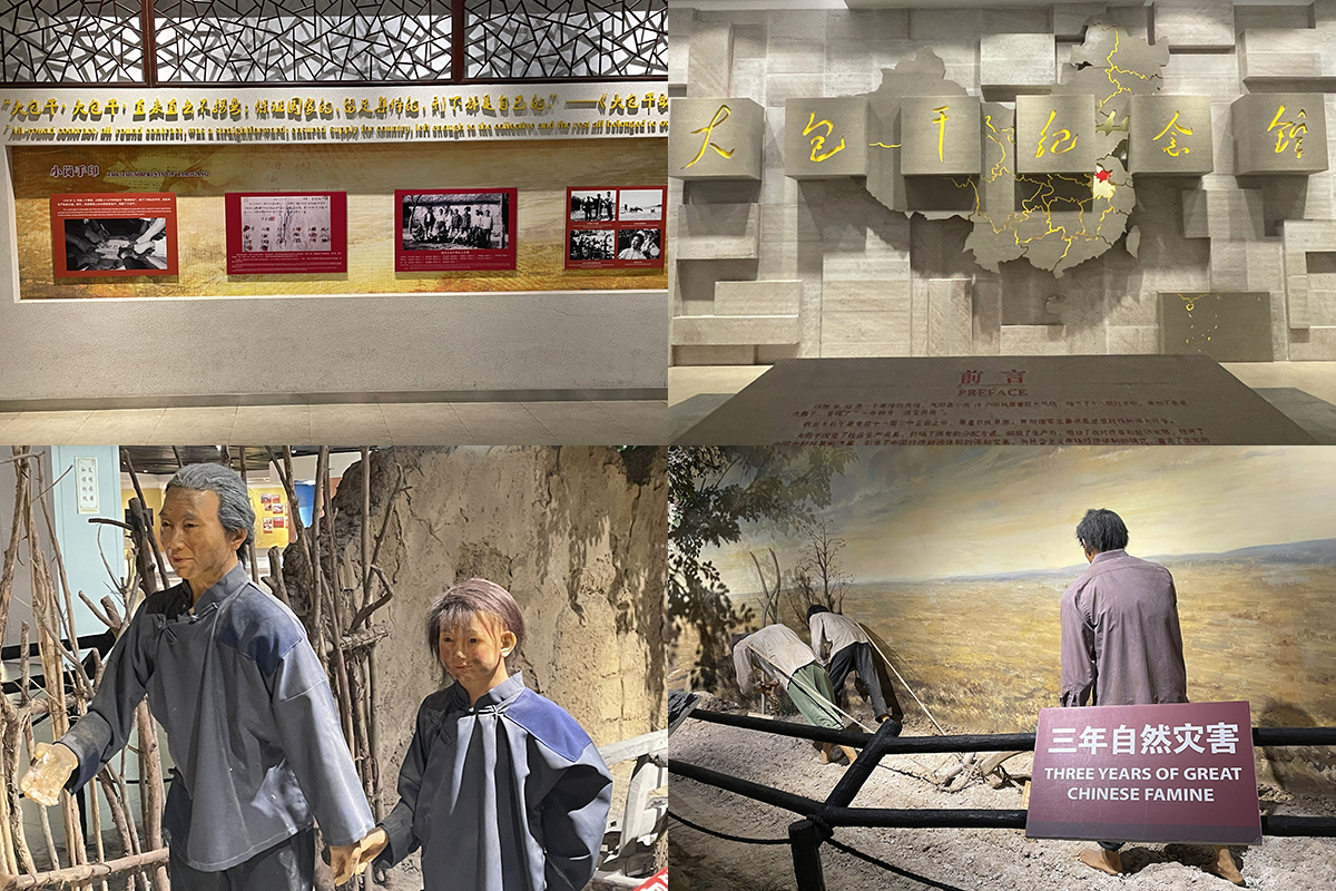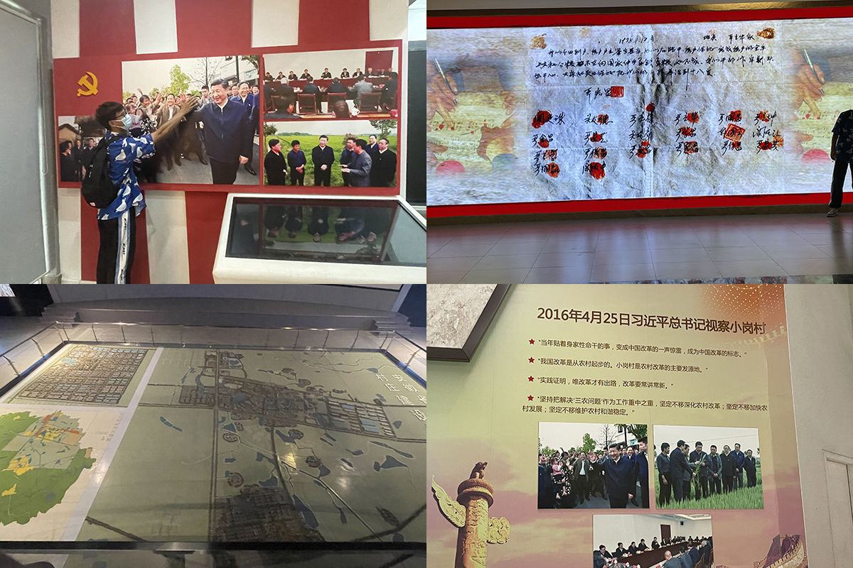 实践当天,团队成员乘车前往凤阳县小岗村,团队一行人首先来到小岗村大包干纪念馆。纪念馆大门前的四个大鼓,分别标着“自力更生,艰苦创业,解放思想,求真务实,改革创新,敢为人先,创新小岗,实力小岗”32个大字,中间则是“奋斗百年路,启航新征程”的标语,大门上是“大包干纪念馆”几个金色大字。进入纪念馆,映入眼帘的是介绍小岗村事迹的大屏幕。步入馆内,蜡像生动反映了当时小岗村生活的艰苦。就是在这种条件下,小岗村18位村民冒着巨大风险,率先包产到户。这种艰苦创业、敢为人先、自力更生的精神,在当时颇为先进,也颇为大胆。在小岗村的大包干纪念馆里,最受关注的便是四十多年前,18位村民按下分田到户红手印的照片。“我们分田到户,每户户主签字盖章,如以后能干,每户保证完成每户的全年上交和公粮不在(再)向国家伸手要钱要粮。如不成,我们干部作(坐)牢杀头也干(甘)心,大家社员也保证把我们的小孩养活到十八岁。” 一纸虽薄,却重千钧。契约的内容寥寥数字,却震撼人心。