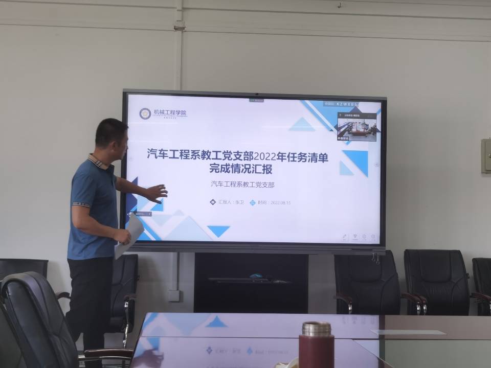为切实推进落实党支部任务清单制和党员承诺制,机械工程学院党委要求各教工党支部在暑假期间召开一次教师党员会议,对照党员承诺内容和党支部2022年工作任务清单,认真梳理总结党员承诺和党支部任务情况完成情况。2022年8月15日上午,依据《机械工程学院党支部任务清单制和党员承诺制实施办法(试行)》,结合机械工程学院暑期重点工作安排,学院党委书记、院长陈丰主持召开教工党支部2022年工作任务清单完成情况汇报交流会,学院党政领导、党政办公室和分团委负责人、各系主任和7个党支部书记参加会议。