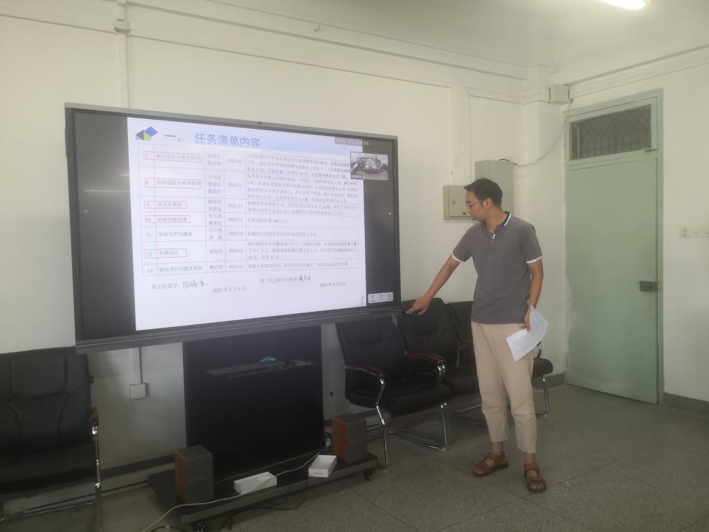 会上,机电控制工程系、机械设计制造工程系、汽车工程系3个教工党支部书记,依次对照本支部2022年工作任务清单,从党支部标准化规范化建设、“双创”项目与“三型”党支部建设、人才队伍建设、基层教学组织建设、专业建设、课程建设、教学团队与教学研究、科研团队与科学研究、研究生教育、科研到账经费,学科与平台建设、学科竞赛活动、实验室建设以及特色项目创建等13个方面,逐条汇报2022年既定工作任务清单完成情况,总结工作成效,梳理存在问题和差距,坚持刀刃向内分析原因,提出下一步推进工作思路和具体整改设想。