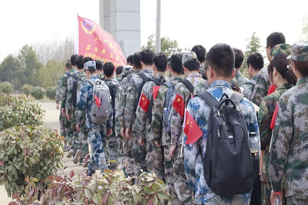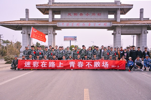 拉练路线从学校南门出发,终点小岗村,全程30公里。307省道上,金色的油菜与绿茵的麦苗交互映衬,高大的芦苇与阵阵涟漪的湖水相互掩映,列队传来阵阵嘹亮的军歌,吸引了众多路人驻足观看,年幼的孩子忘却了自己手中旋转着的玩具,在队伍旁观望,眼里闪烁着敬畏而又向往的光芒。随着终点越来越近,大家的脚步愈发勇毅,参加拉练的青年学生林敏说,“刚开始徒步的时候信心十足,到了半程之后明显感觉到体力的不支,但看到前辈们在前面那坚定的步伐,我顿时感觉浑身充满了力量。”最终,一行人抵达了“中国农村改革第一村”——小岗村,并参观了“沈浩纪念馆”和“大包干纪念馆”。