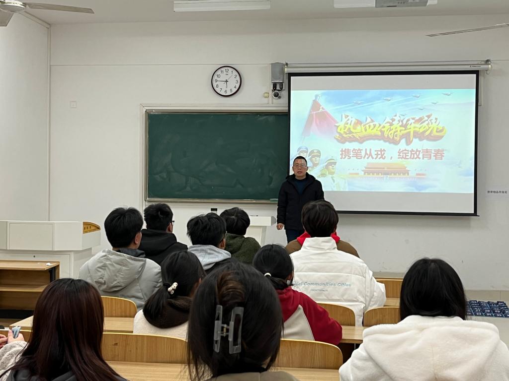 为帮助大学生更好地了解应征入伍政策,提升大学生参军入伍的积极性,11月21日-11月27日,财经学院各班级先后召开大学生应征入伍宣传教育主题班会。