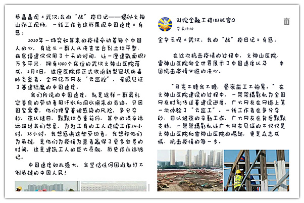 各团支部充分利用易班、QQ、腾讯会议等网络平台,通过“抗疫先进事迹”微视频观影、支部书记讲团课、各支部抗疫志愿者分享工作感受等多种形式,充分了解党和国家为做好疫情防控工作所采取的重大决策与措施举措;学习宣传全国一盘棋、举全国之力支援湖北的生动事迹;感受共抗疫情中体现的中国精神、中国力量、中国速度。