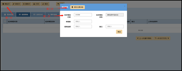 F71点击增加行,先填写经济事项代码,然后在点击提取发票信息按钮。