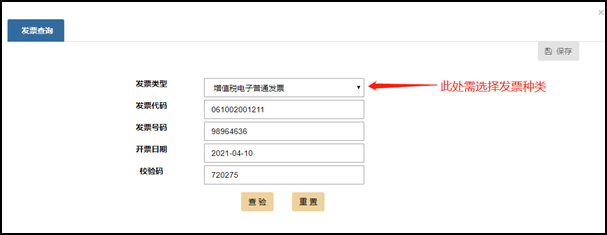 F71填写需要报销的发票信息,验证码是后六位数,点击查验