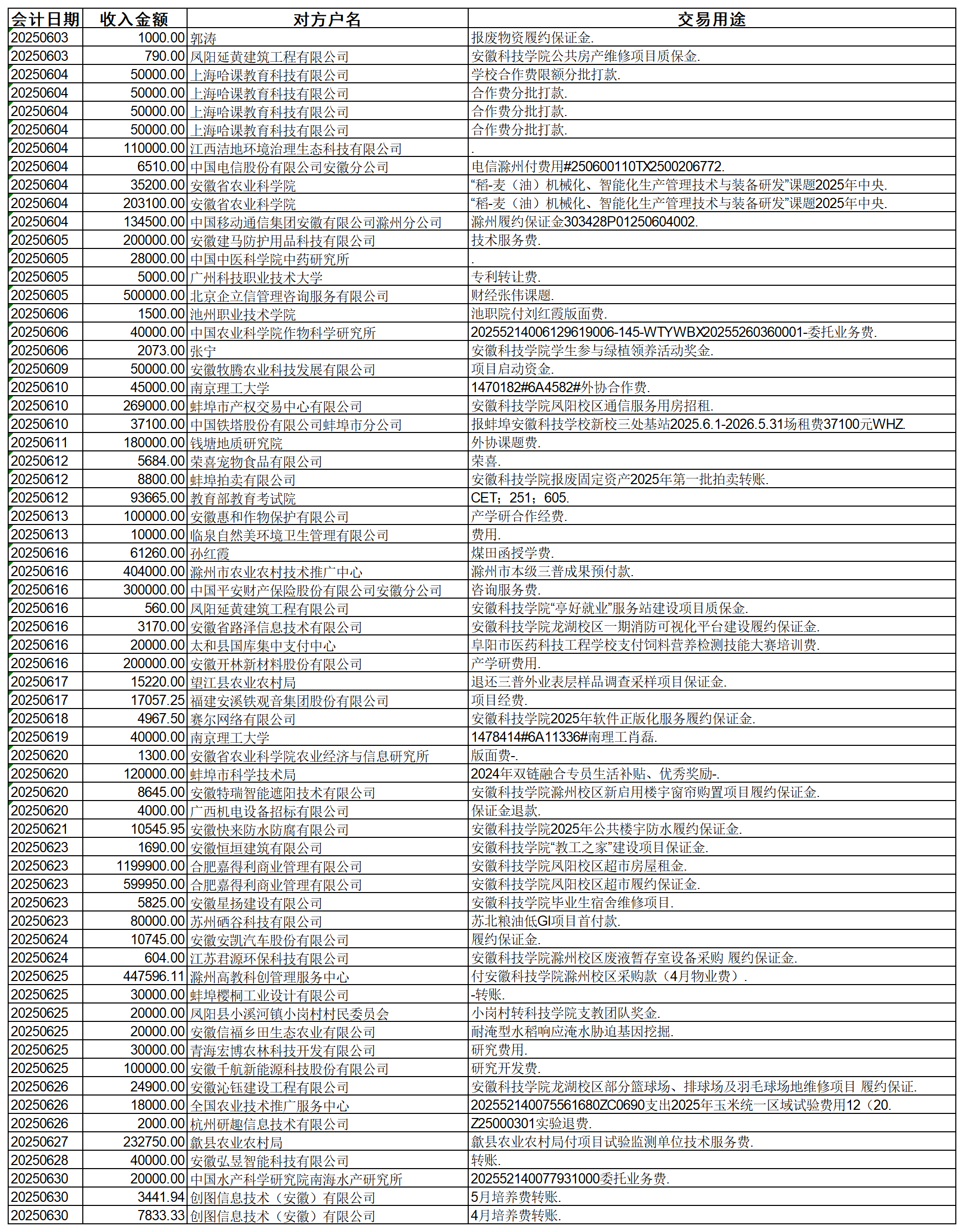 2025年6月份到账信息(20250601-20250630)-2025年6月30日更新(请各位老师汇款至学校账户时务必写清交易附言)