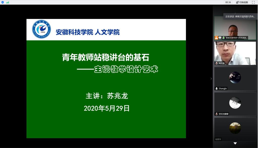 为提升学校青年教师业务素质能力,强化业务学习,优化课堂教学设计,提高课堂教学质量,5月29日下午,学校教师能力发展中心与教学督导办公室通过腾讯会议平台联合举办了主题为“青年教师站稳讲台的基石——主谈教学设计艺术”的专题讲座。校教学督导员苏兆龙副教授受邀担任主讲,来自各教学院(部)的青年教师和部分教学督导员参加讲座。讲座由教学督导办公室主任程斌主持。