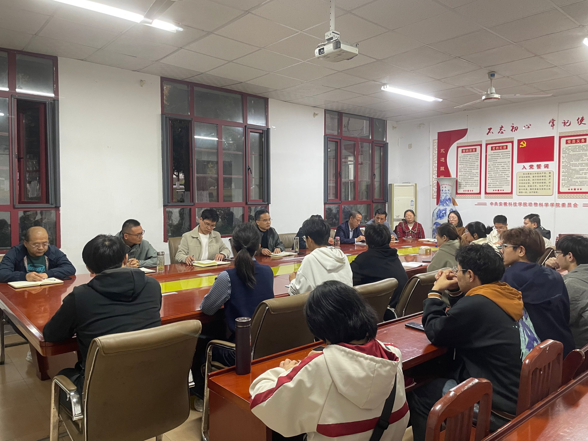 为进一步加强教学质量监控,切实提高教学质量,深入了解本学期教学运行状况和学风精神情况,掌握“学生中心、产出导向、持续改进”OBE教学理念贯彻落实情况,11月13日下午,动物科学学院在学院会议室召开教风、学风建设大讨论活动。学院党委副书记、副院长(主持工作)周金星,党委委员、副院长贺绍君,党委副书记汤帅出席座谈会,师生代表参加会议,会议由贺绍君主持。