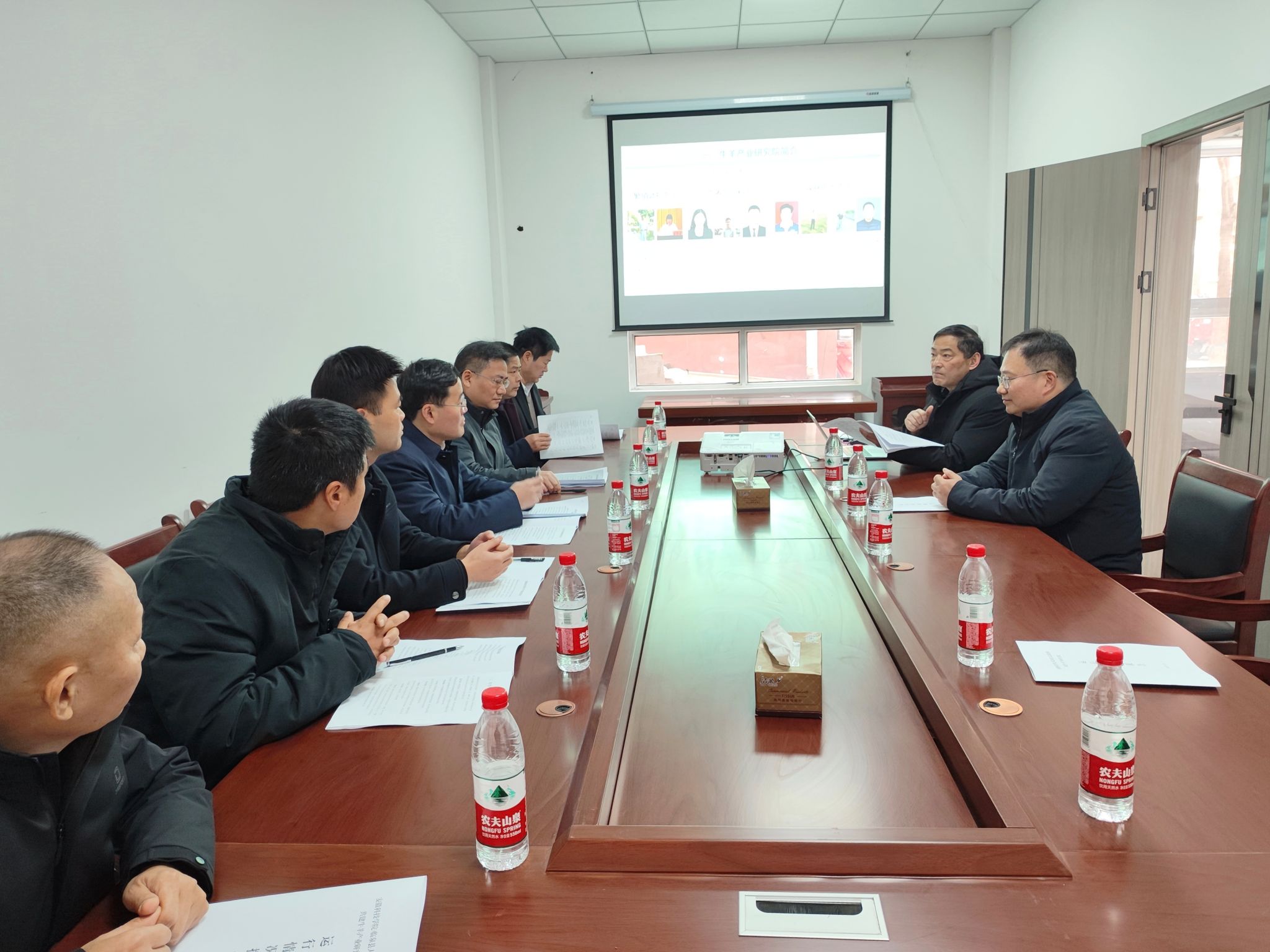 1月22日,新春佳节来临之际,临泉县委副书记尹建华,县委常委、县政府副县长汪涛以及县科技局、县农业农村局、县总工会、国家农业科技园区管理服务中心负责同志前往博业体育(中国)官方网站-登录入口牛羊产业研究院进行春节慰问调研,动物科学学院党委书记甘宗平、庞训胜教授和王世琴博士参加此次交流活动。