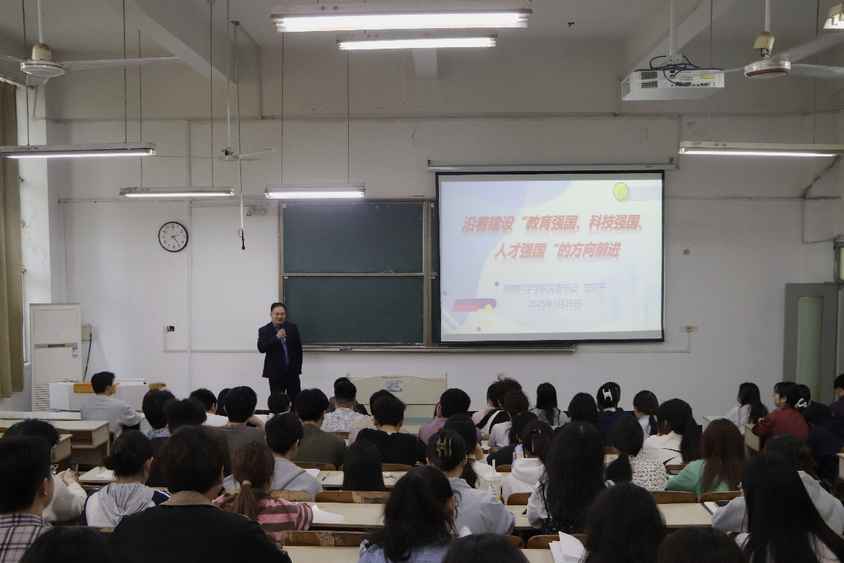 为深入贯彻落实习近平新时代中国特色社会主义思想和党的二十大和二十届二中、三中全会精神和习近平总书记关于青年工作的重要思想,3月26日下午,动物科学学院在求知楼A101举行2025年度“青年马克思主义者培养工程”大学生骨干培训班暨院级团校开班典礼,学院党委书记甘宗平出席并讲授“开班第一课”,党委副书记汤帅,全体辅导员和来自各班级、学生组织主要学生干部参加仪式。仪式由辅导员刘成义主持。