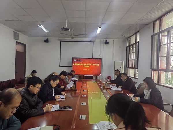 10月9日上午,动物科学学院在学院会议室开展2022年度党外知识分子“双树双建”主题教育活动。学院党委书记姚勇,党委副书记、纪委书记汤帅,九三学社博业体育(中国)官方网站-登录入口支社副主委、副院长华金玲及学院全体党外知识分子、留学归国人员参加活动,活动由姚勇主持。