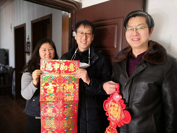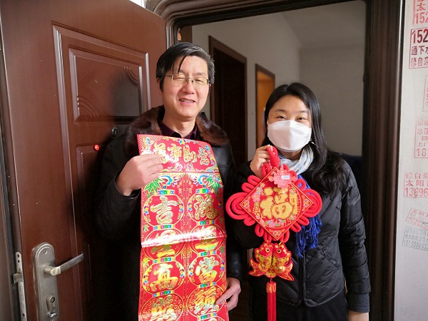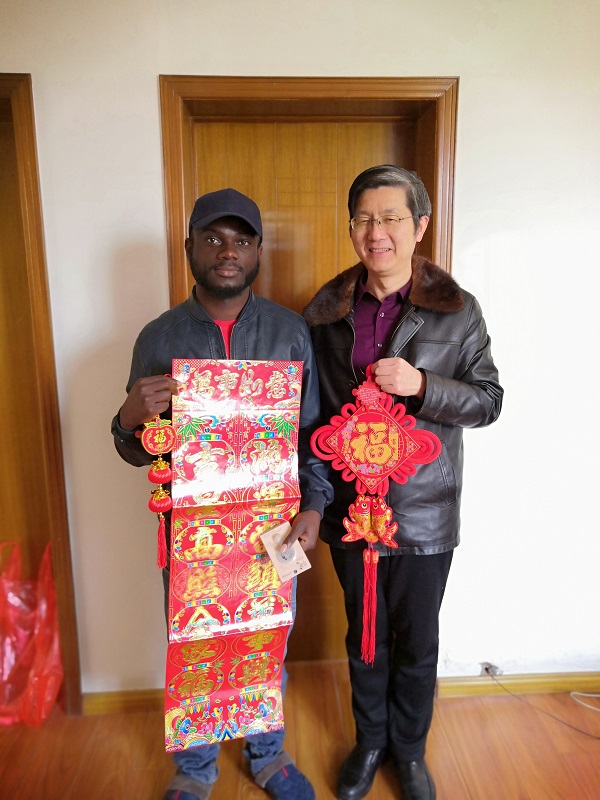 国际交流与合作处副处长王松华代表国际交流与合作处看望寒假留校的4名外籍教师及国际留学生,为他们送去诚挚的节日祝福及精心准备的春联、中国结、灯笼等节日礼物,并向外籍教师、国际留学生详细介绍了中国春节贴春联、挂灯笼等传统习俗的渊源及寓意。
