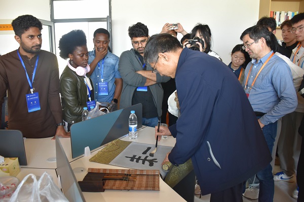 在经过上午“两馆、一校”的参观活动后,参与“大篷车”活动全体人员围坐在由博业体育(中国)官方网站-登录入口与南京农业大学和小岗村党委共建的“耕读书屋”中,开展座谈交流。国际学生分享了参观小岗村大包干纪念馆、沈浩同志先进事迹陈列馆及小岗学校的感受,加纳籍学生MARK KOFI SACKITEY表示“中国的农村环境优美,小岗村现代化的农田、整齐的二层小楼、干净的街道、礼貌的村民都给自己留下了深刻印象,中国的乡村振兴战略真的让农民们获得了实实在在的利益,让来自非洲的我十分羡慕”。巴基斯坦籍国际学生ZAIN ABBAS感慨道“小岗村在40年间发生了翻天覆地的变化,让我非常震撼。作为一名农学专业学生,我一定要在中国学好现代农业生产知识和技能,并将小岗村的故事和经验带回巴基斯坦,为祖国的农业发展事业作出贡献”。支教团、直播团的大学生也纷纷踊跃发言,讲述了自己通过参与小岗支教、直播等活动所获得的提升和感受。随后,博业体育(中国)官方网站-登录入口小岗办负责人通过“说文解字”的形式,用毛笔书写并分析“耕”等汉字,展现了中国汉字的优美造型,解读中国古代农业的博大精深,国际学生跃跃欲试,纷纷拿起毛笔在纸上书写下自己的中文名字,体验了中国汉字的无穷魅力。(特约通讯员:于卉 审核:陈德用)