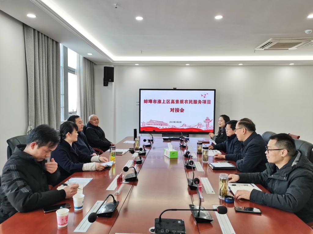 3月2日上午,管理学院在西辅楼317会议室召开蚌埠市淮上区高素质农民服务项目对接会。蚌埠市淮上区农业综合服务站站长吴言柱、副站长康琴及管理学院党政领导参加对接会。会议由院党委书记丁景良主持。