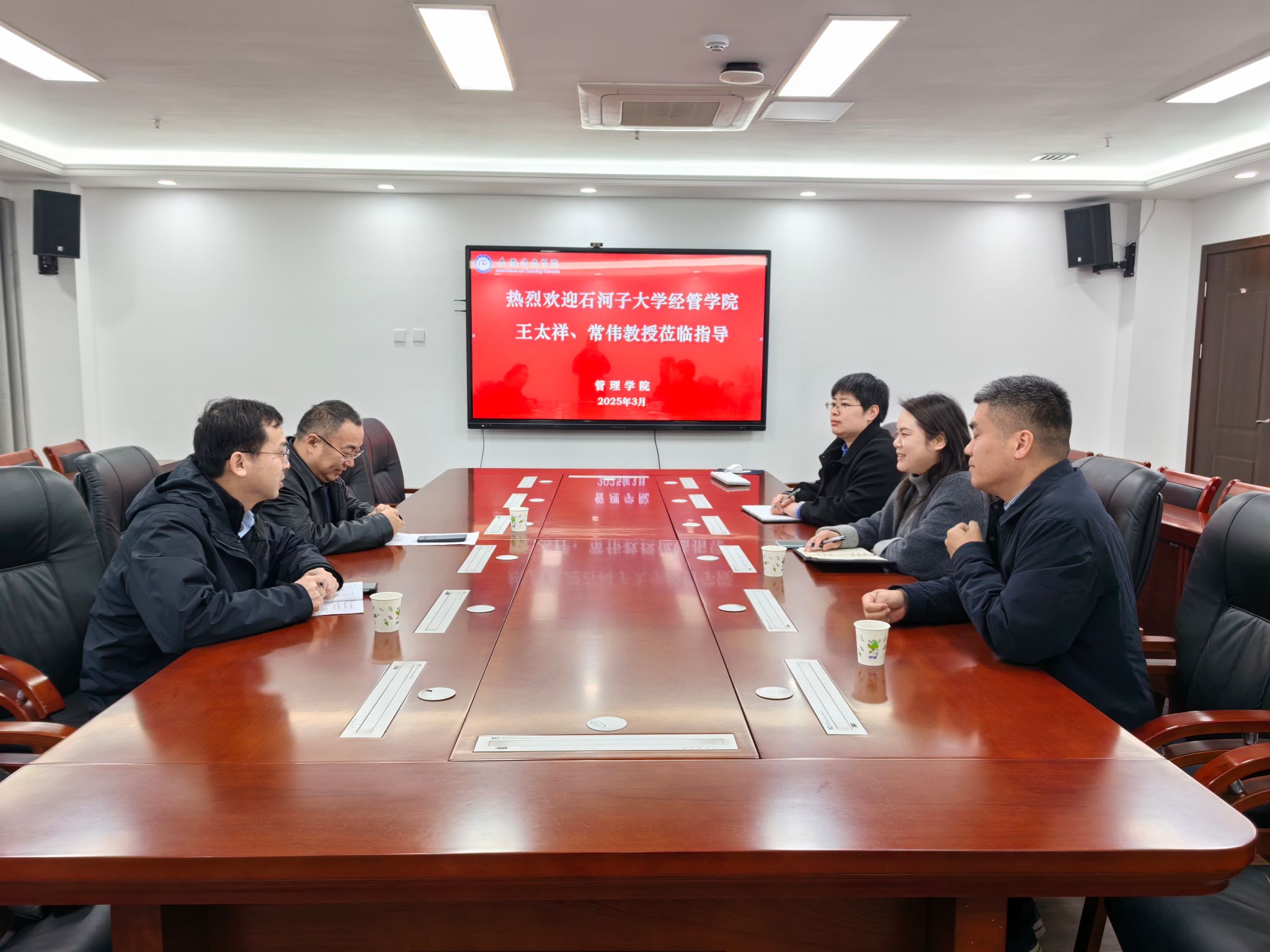 3月13日上午,石河子大学经济与管理学院农林经济管理系党总支书记王太祥、兵团产业政策研究中心主任常伟一行来管理学院考察交流。管理学院副院长郑谦、实验室主任杨续昌等参加了交流座谈会。会议由郑谦主持。