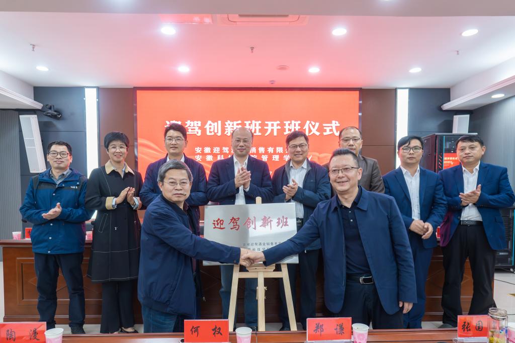 金秋送爽,硕果飘香。10月27日下午,由管理学院与迎驾酒业销售有限公司联合举办的“迎驾创新班”开班仪式在我校龙湖校区西辅楼111会议室如期举行。校党委委员、副院长王孝义,教务处副处长、创新创业学院副院长高青海,安徽迎驾酒业销售公司副总经理兼安徽管理中心总经理周鹏,安徽迎驾贡酒股份有限公司人力部部长李晓洵,安徽迎驾酒业销售有限公司人力部部长吴兵兵,蚌埠区域总经理何权及管理学院党政领导出席了开班仪式。开班式由管理学院党委书记丁景良主持。