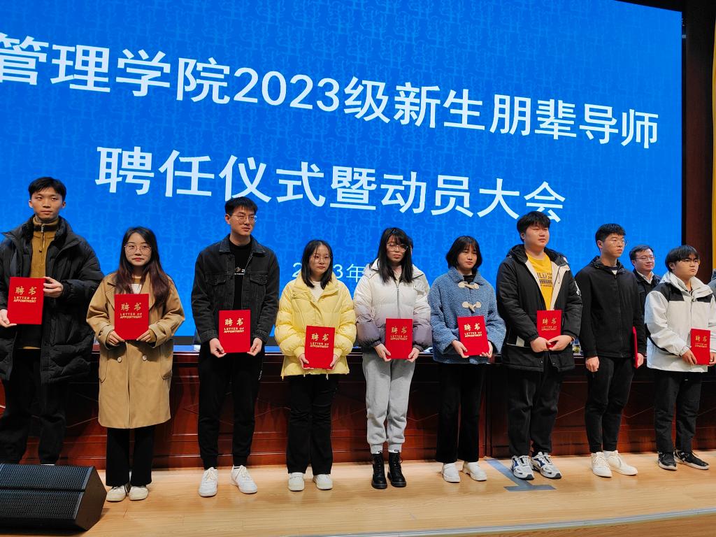 据悉,此次受聘的80名朋辈导师均从管理学院高年级本科生和研究生中的学生党员和优秀学生骨干中严格选拔产生,首批次对学院各专业300多名朋辈新生开展学业、生活、工作等各方面为期一年的朋辈指导。(特约通讯员:江旭聪 摄影:刘然 朱紫玉 审核:陶漫)