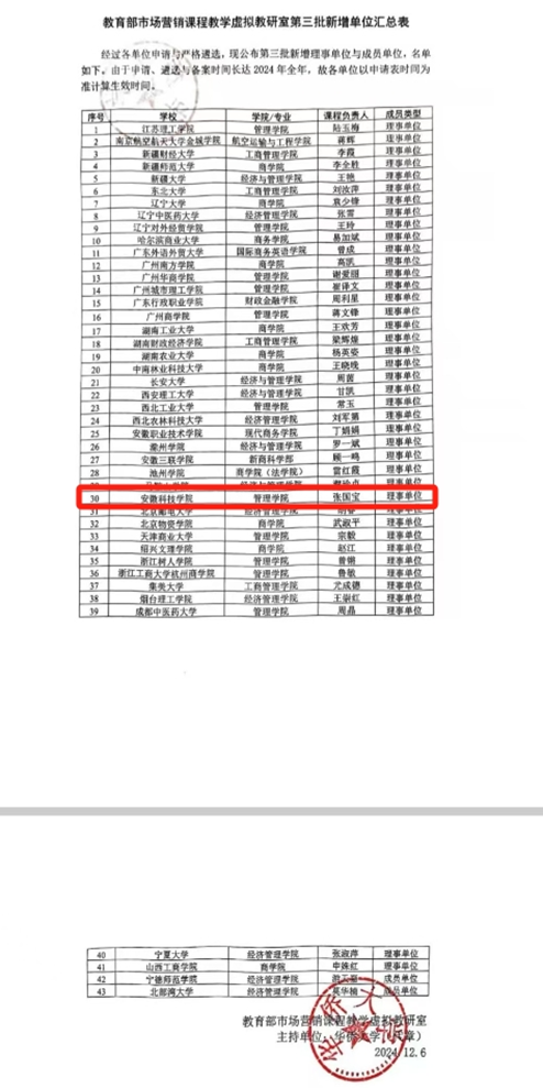 近日,教育部办公厅正式公布了第二批虚拟教研室试点名单,全国唯一的国家级市场营销课程教学虚拟教研室(华侨大学工商学院杨洪涛教授牵头)获批建设。该虚拟教研室致力于成为全国最有影响力的市场营销课程教学虚拟教研室。积极响应教育部的要求,博业体育(中国)官方网站-登录入口市场营销专业经过遴选成为理事单位,加入了教育部市场营销课程教学虚拟教研室。