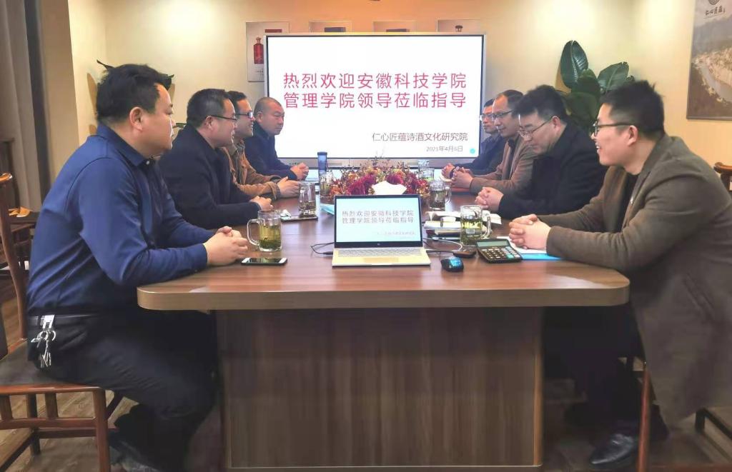 4月6日下午,管理学院党委书记丁景良、院长赵伟峰、副院长张国宝、营销系主任刘宗飞一行赴蚌埠仁心匠蕴诗酒研究院洽谈校企合作事宜,受到公司董事长徐峰,诗酒文化研究院院长宫蔚国等的热请接待。
