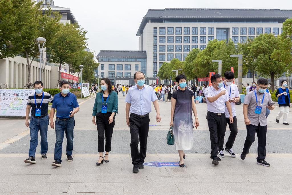 带着对新生的关怀,上午9时许,管理学院党委书记丁景良,党委副书记、院长陈传万,党委副书记陶漫,党委委员、副院长郑谦,党委委员、副院长张国宝与学院全体辅导员一道深入学院迎新现场亲切看望入学报到的2022级新生。