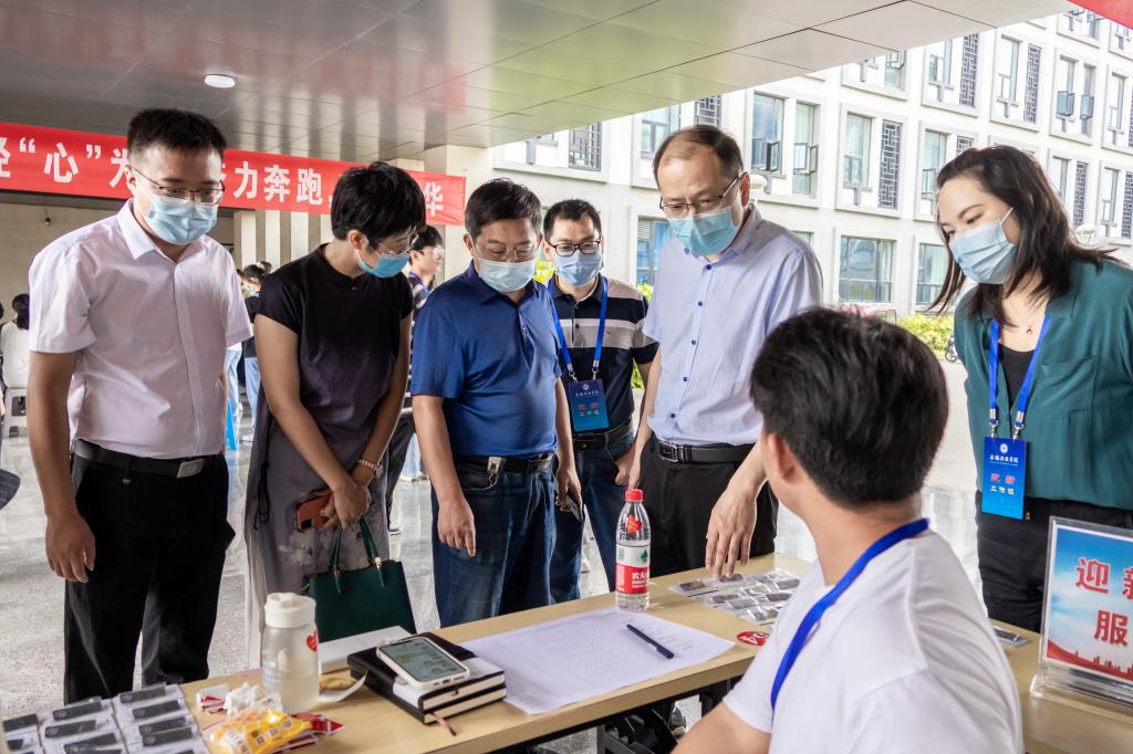 随后,穿过熙熙攘攘的人群,丁景良、陈传万一行专门来到学院报到检录处,仔细询问报到检录流程,慰问在这里辛勤工作的辅导员助理和迎新志愿者们。