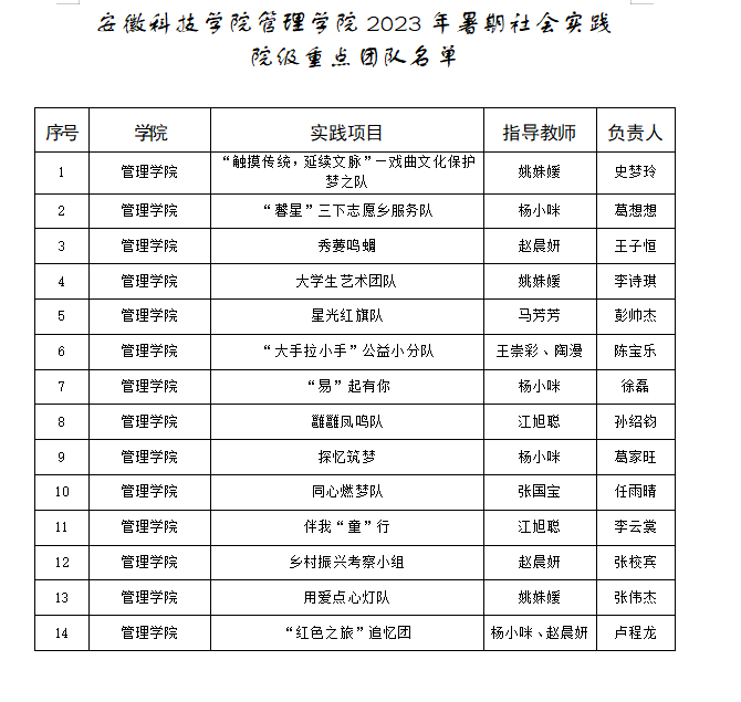 根据《博业体育(中国)官方网站-登录入口关于开展2023年大学生志愿者暑期“三下乡”社会实践活动的通知》的相关要求,学院团委组织评审委员会,围绕实践主题、实践形式、实践可行性、实践成果预期进行了综合评审,评定院级重点团队14支。现予以公布(各等次内排名不分先后)。