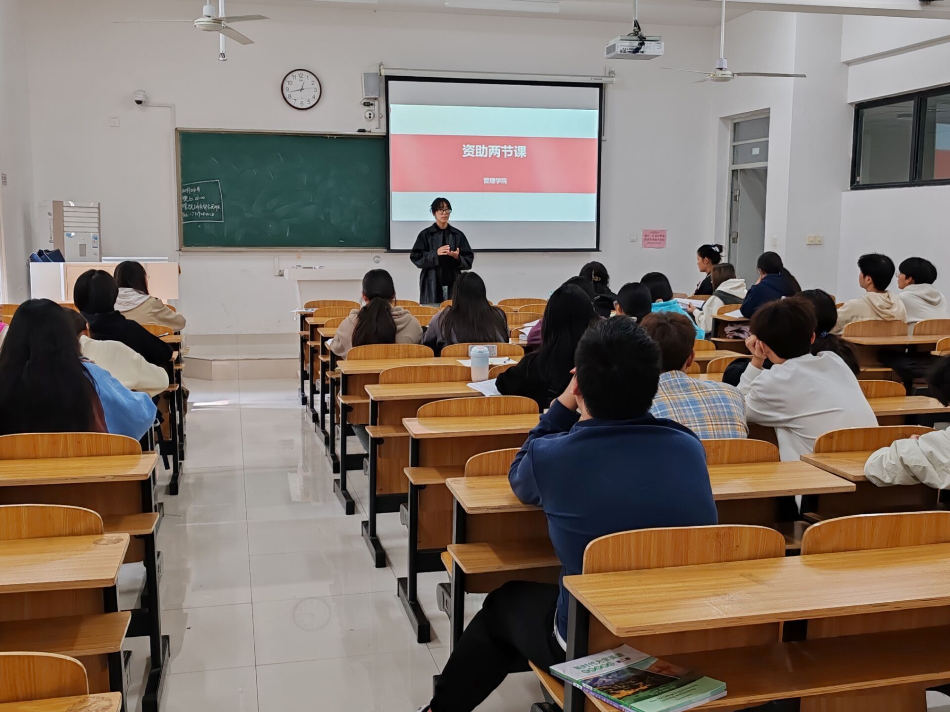 为深入贯彻落实国家高校资助政策,进一步做好学生资助政策宣传工作,管理学院在2024级新生入校后,以入学教育、宣讲会和班会的形式分批为2024级新生班级开展资助政策“两节课”宣讲活动。