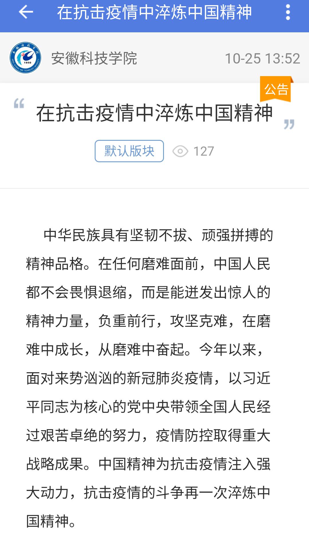 管理学院通过易班平台开展“弘扬伟大抗疫精神”主题学习