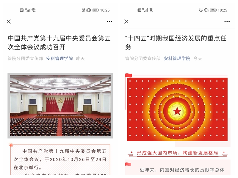 管理学院各团学组织通过主题班会、主题团日活动等传统形势,以及易班、QQ、微信等新媒体平台,持续推送十九届五中全会的各类新闻,营造浓厚学习宣传氛围,不断拓展方式方法和平台载体,增强学习宣传贯彻党的十九届五中全会精神的针对性实效性。
