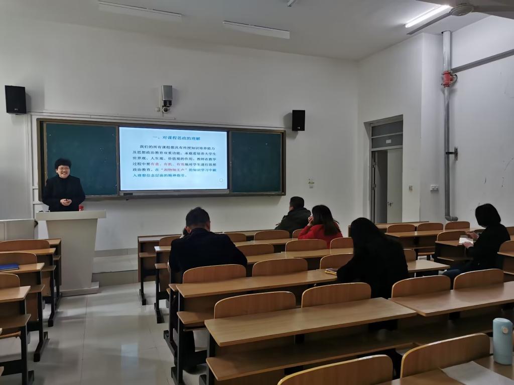 胡月英教授围绕对思政课的理解、课程思政的具体做法阐述自己的观点。课程思政是落实立德树人根本任务的重要途径,教师需要在教学过程坚持为党育人、为国育才,培养社会所需要的合格人才,将学生培养成为德才兼备、全面发展的人才。课程思政需要落实到实处,教师需要做到以下几点:一是做给学生看,老师要以身作则,严以律己,让学生把老师当作标杆。二是要坚定正确的政治方向,坚守“学术研究无禁区,课堂讲授有纪律”的规矩,使课堂成为弘扬主旋律、传播正能量的主阵地。三是要有职业操守,遵纪守法。四是要鼓励学生志存高远、脚踏实地,让学生在学习过程中体悟人性、弘扬人性、完善修养,培育理性平和的心态,让勤奋学习成为青春飞扬的动力。五是践行社会主义核心价值观,引导学生做社会主义核心价值观的坚定信仰者、积极传播者、模范践行者。六是要见缝插针,润物无声。将节日活动,作业是否认真,能否及时提交、诚信考试、突发事件等均可融入思政教育。