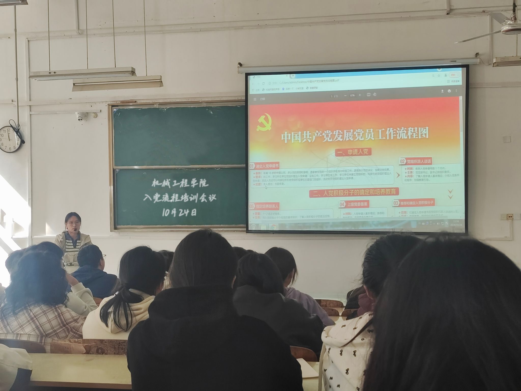 为进一步提升团支部组织工作能力,引导广大青年学生积极主动向党组织靠拢,夯实发展党员工作规范,10月24日中午,机械工程学院在求A102教室召开入党流程培训专项工作会议,全体非毕业班团支部书记参加,会议由学院党委组织员姚迪主持。