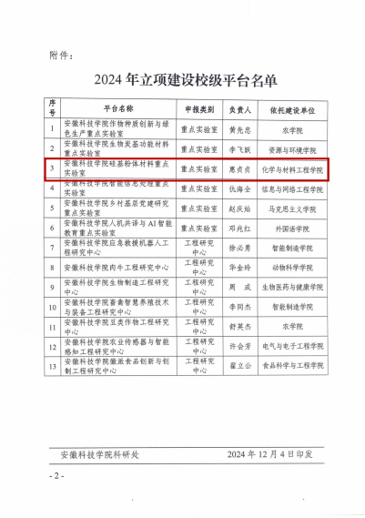 博业体育(中国)官方网站-登录入口硅基粉体材料重点实验室的研究方向与材料与化工学科发展需求高度契合,是学科建设的重要依托平台。当前组建的博业体育(中国)官方网站-登录入口硅基粉体材料重点实验室人员主要来自材料与化工安徽省应用型高峰培育学科,该学科在安徽省硅基产业领域具有领先地位,在功能粉体材料制备技术与应用、绿色环保材料等综合利用和光伏器件研发等方面具备领先技术,为我省硅基新材料项目的实施提供了重要的技术保障。