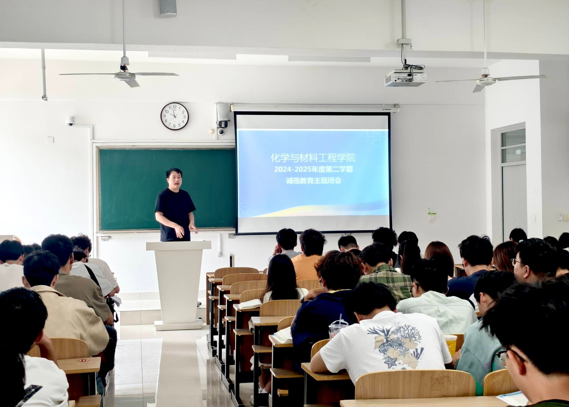 班会上,辅导员将诚信教育与思想政治教育、学风建设深度融合,结合学术不端、考试作弊、资助诚信等典型案例,深入解读《化学与材料工程学院学生操行量化管理实施细则》及学生手册中关于诚信的考核要求,强调诚信在科研、考试、人际交往中的重要性。各班级还集体签署了《期末考试诚信承诺书》,承诺遵守学术规范、践行文明公约。主题班会是学院“三全育人”工作的重要环节,助力学生以诚信品格点亮青春底色,在成长成才中践行责任与担当,为优良院风学风建设奠定了基础。