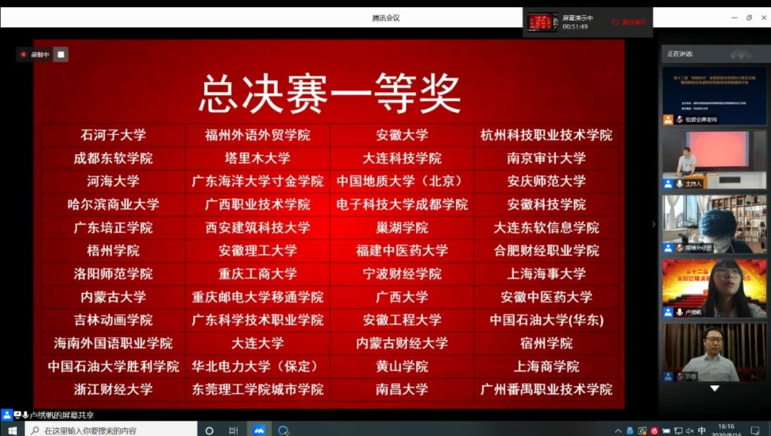 8月14—16日,由教育部工商管理类专业教学指导委员会指导,虚拟仿真实验教学创新联盟经济管理类专业工作组、全国管理决策模拟大赛组委会主办,华北电力大学承办的第十二届 “创新创业”全国管理决策模拟大赛总决赛暨创新创业与虚拟仿真教学协同发展研讨会在“云端”圆满落幕。